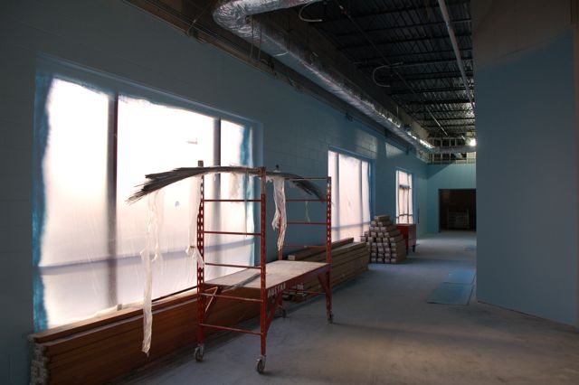 The drywall is finished in the preschool area and painting has started. This is part of the hallway that wraps around the entire section.