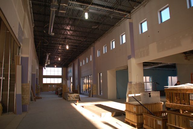 Drywall is going up in the rest of the building as well. This is the main hallway to connect all the new areas. Drywall is also finished in the Elementary section. Once the mudding is finished, painting should start soon.
