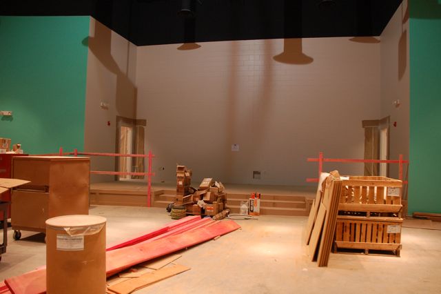 Painting is finished in the elementary auditorium and the stage has been built.