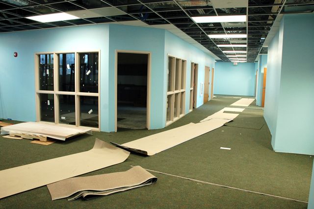 Carpet is being installed in the classrooms and hallways of the kids areas.