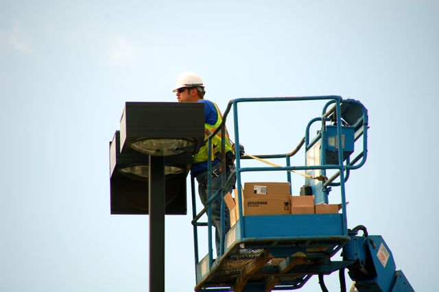 As you drive through the parking lot at night, you’ll notice that many of the lights have been put back into place.