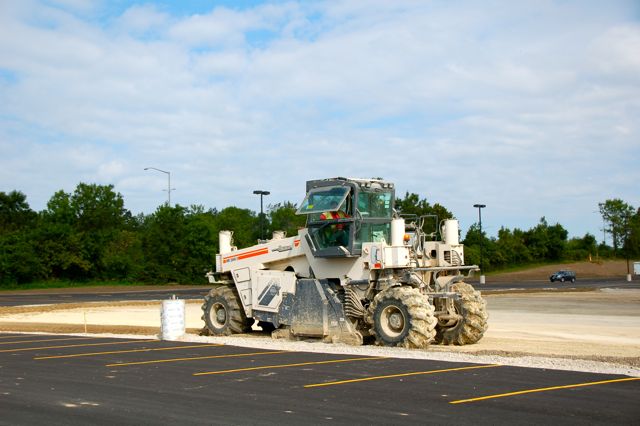 Work continues on the parking lot. This last week they finished digging out parts of the old lot to make it level with the new lots and new building. They also finished the soil stabilization process by mixing lime into the soil. This next week they will be adding curbs in preparation for more asphalt.