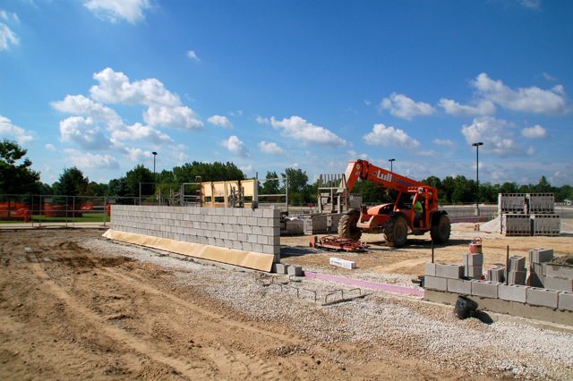Workers have begun constructing the brick walls for the pre-school area on the south-west side of the building.