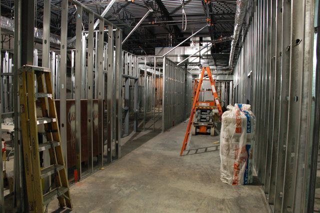 Much of the framing has gone up in the grand hallway that connects all the new sections.