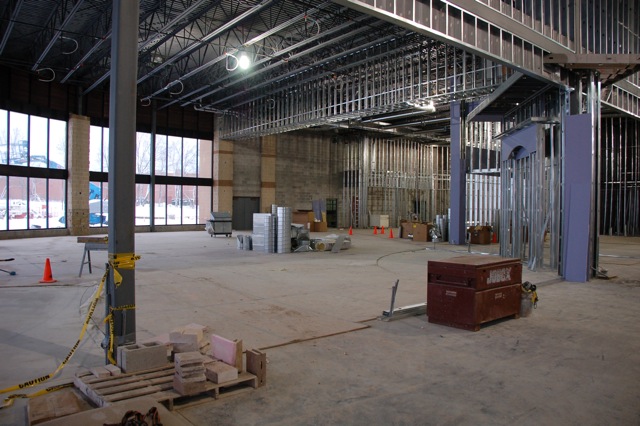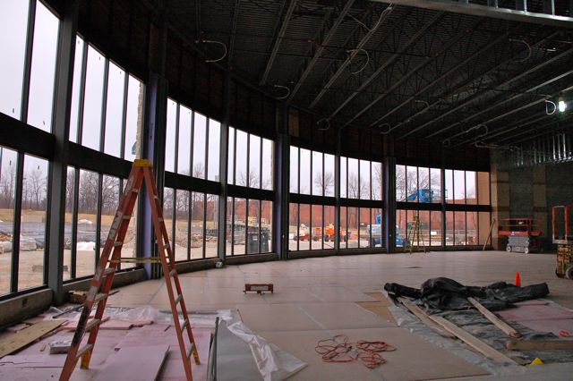 The concrete floors have been poured in the food service and dining areas. Windows should be going in soon.